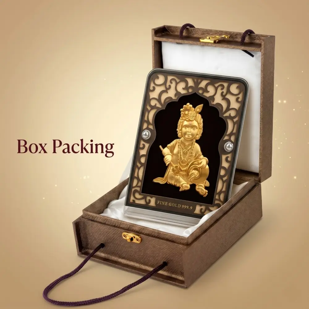 Crafted with devotion and precision, this radiant piece features a magnificent deity embossed on an authentic 24kt gold laddu gopal frame. Because we know this is an emotional investment, we ensure 100% transparency—the “999.9 Fine Gold” hallmark is clearly visible right on the base.