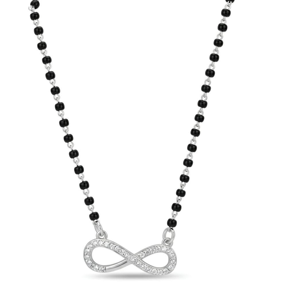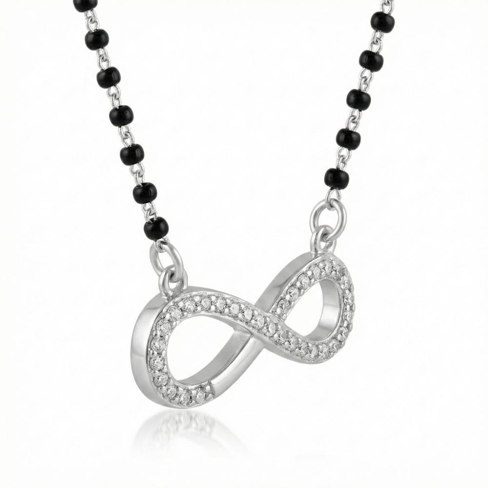 • elegant silver infinity mangalsutra with black beads modern everyday wear