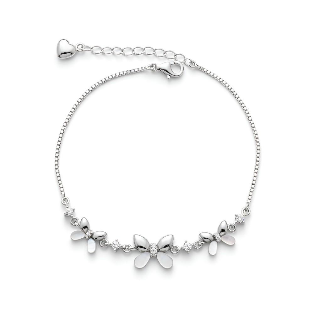 Elegant Silver Butterfly Bracelet with MOP Charms