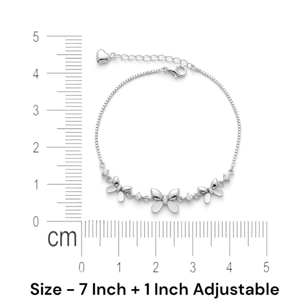 • Elegant Silver Butterfly Bracelet with MOP Charms Size details