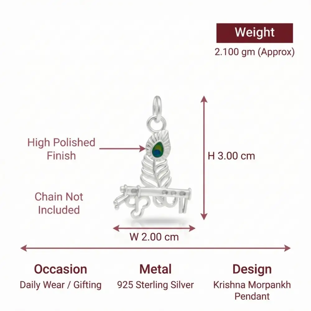 👉 925 Silver Krishna Morpankh Pendant Necklace with Flute