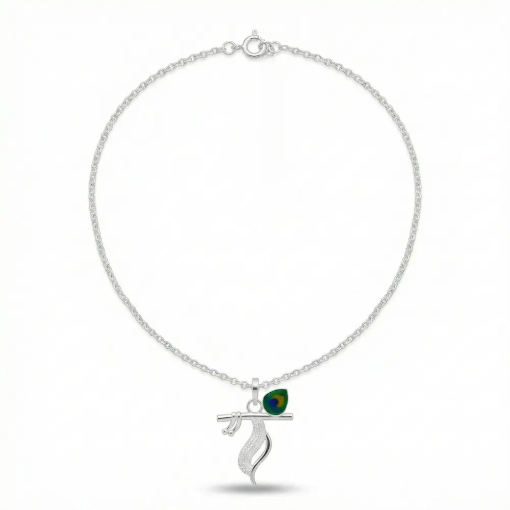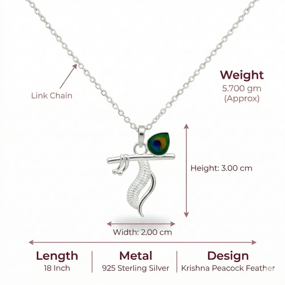 925 Silver Krishna Peacock Feather Pendant Necklace