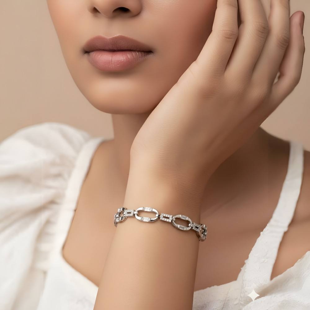Designed for modern women who appreciate simplicity with a hint of luxury, this silver bracelet for women complements both casual and formal looks. The high-polish rhodium finish enhances its shine, while the lightweight design ensures all-day comfort.