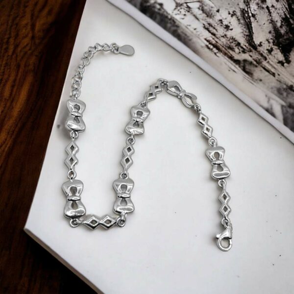 The Silver Interlock Shining Bracelet is a dazzling accessory that effortlessly combines sleek style with a touch of glamour. This exquisite piece of jewelry is designed to make a statement and elevate your overall look with its captivating design.. The interlocking links form a continuous chain, seamlessly flowing around your wrist, creating a captivating and elegant silhouette.