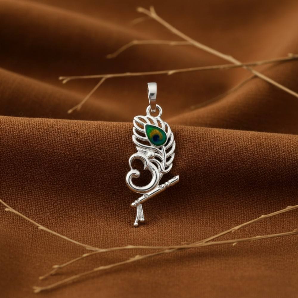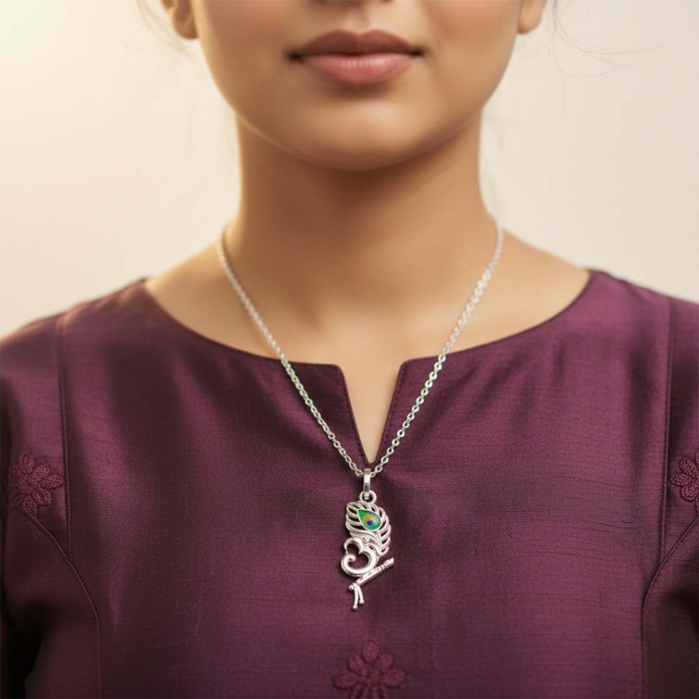 This Silver Krishna Om Pendant with Peacock Feather beautifully blends devotion and artistry.