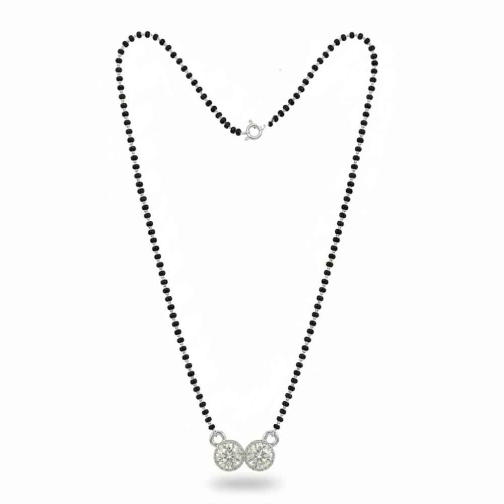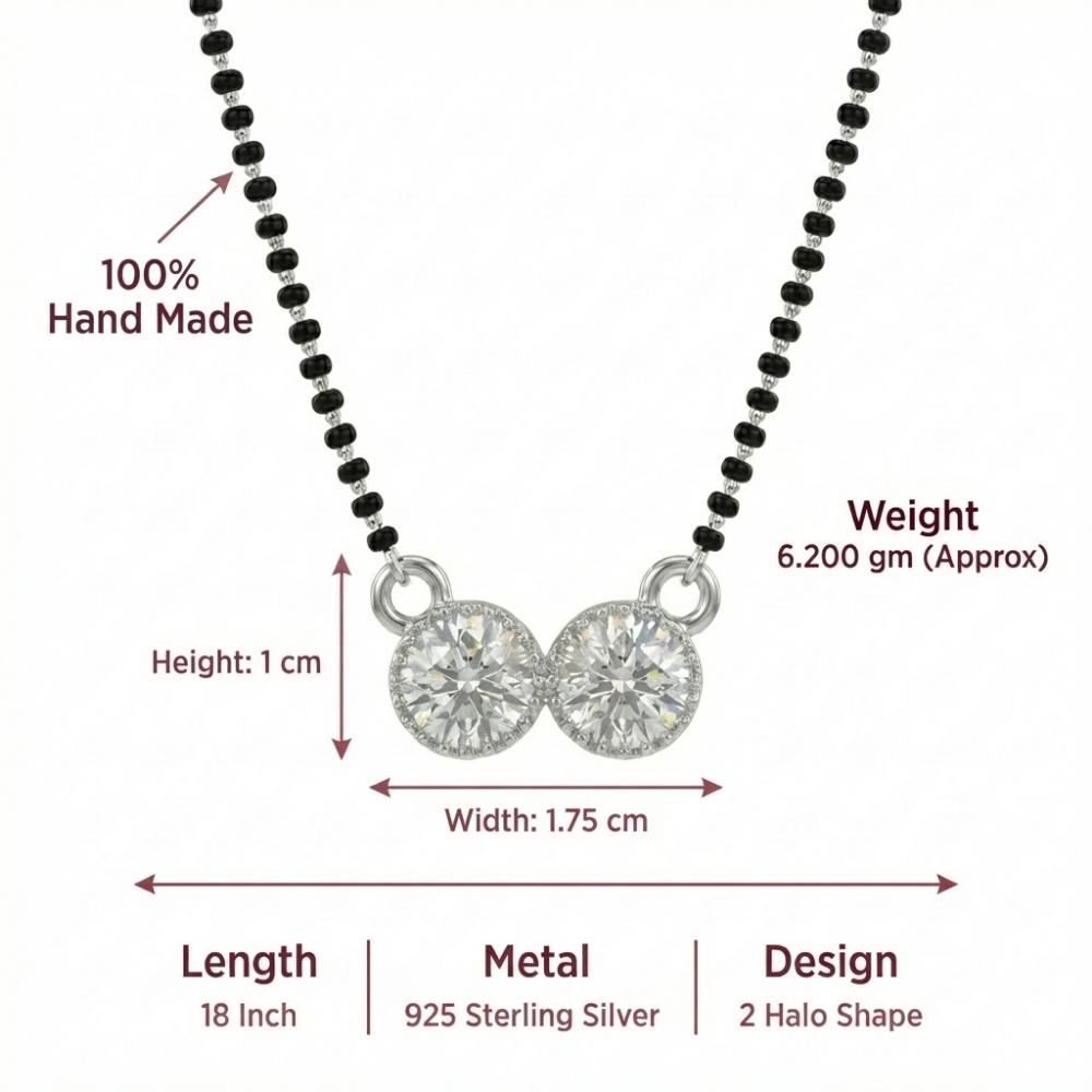 • Design – Double Halo Shape silver mangalsutra with solitaire-style pendant