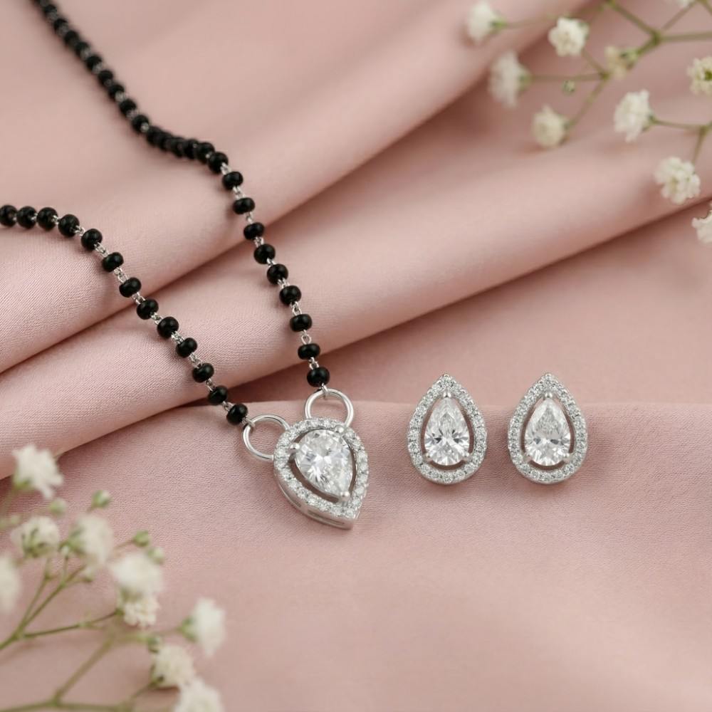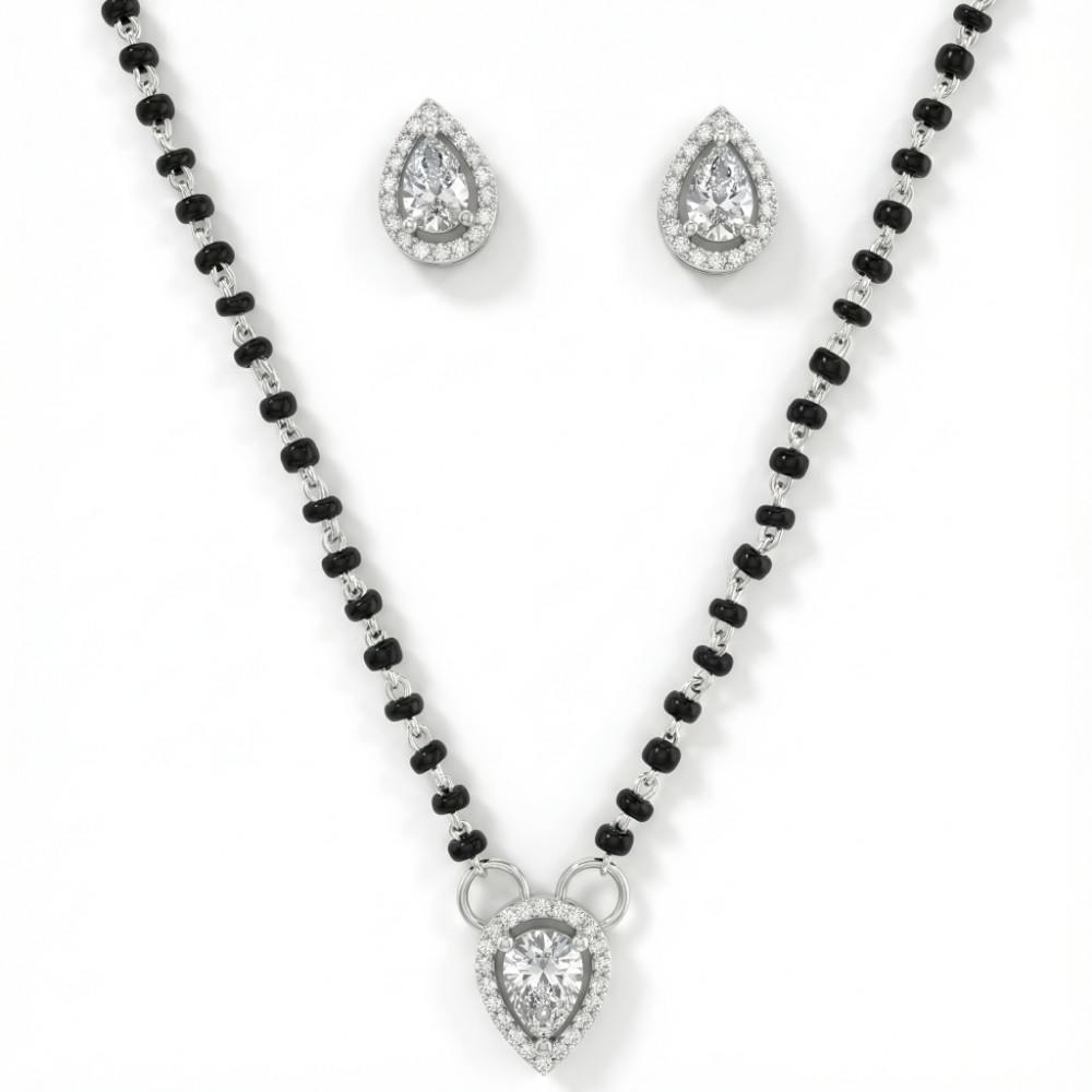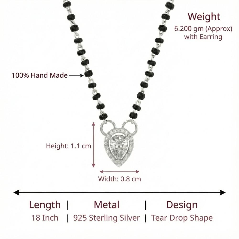 - Design β Tear Drop shape silver mangalsutra with solitaire-style pendant