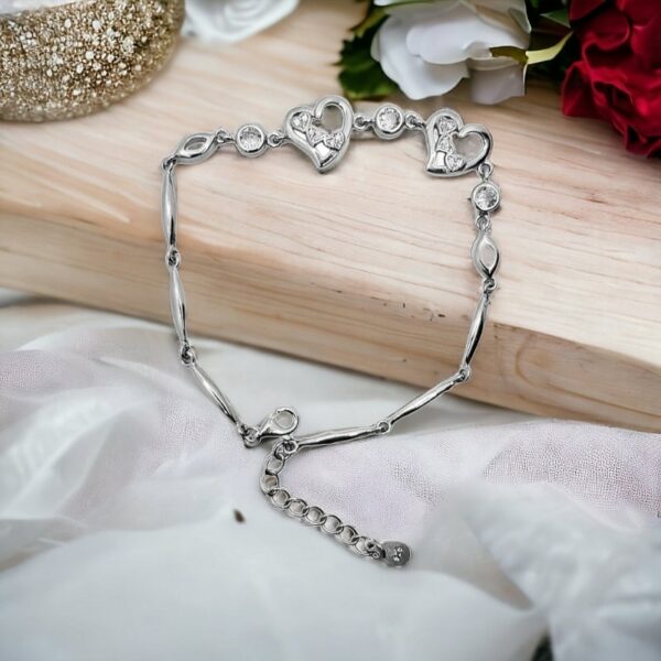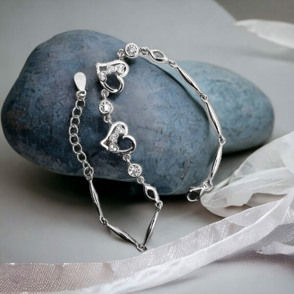 Silver Twin heart Bracelet so sweet for the true love in your life. This silver bracelet has two hearts that are connected with a fine chain and has the words “Love Me” engraved on the heart. This bracelet is a symbol of love. It is a reminder to always be thankful for the person you love.