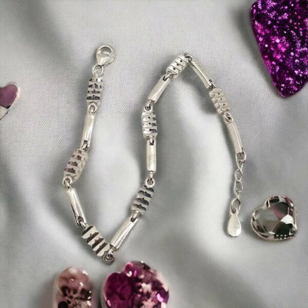 The Silver Vintage Link Bracelet is a captivating piece of jewelry that beautifully captures the charm and nostalgia of a bygone era. With its intricate design and timeless appeal, this bracelet effortlessly adds a touch of vintage elegance to any ensemble.